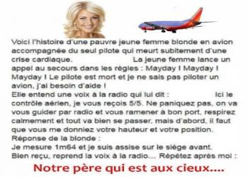 Une jeune femme blonde en avion accompagnée du seul pilote qui meurt subitement d'une crise cardiaque....